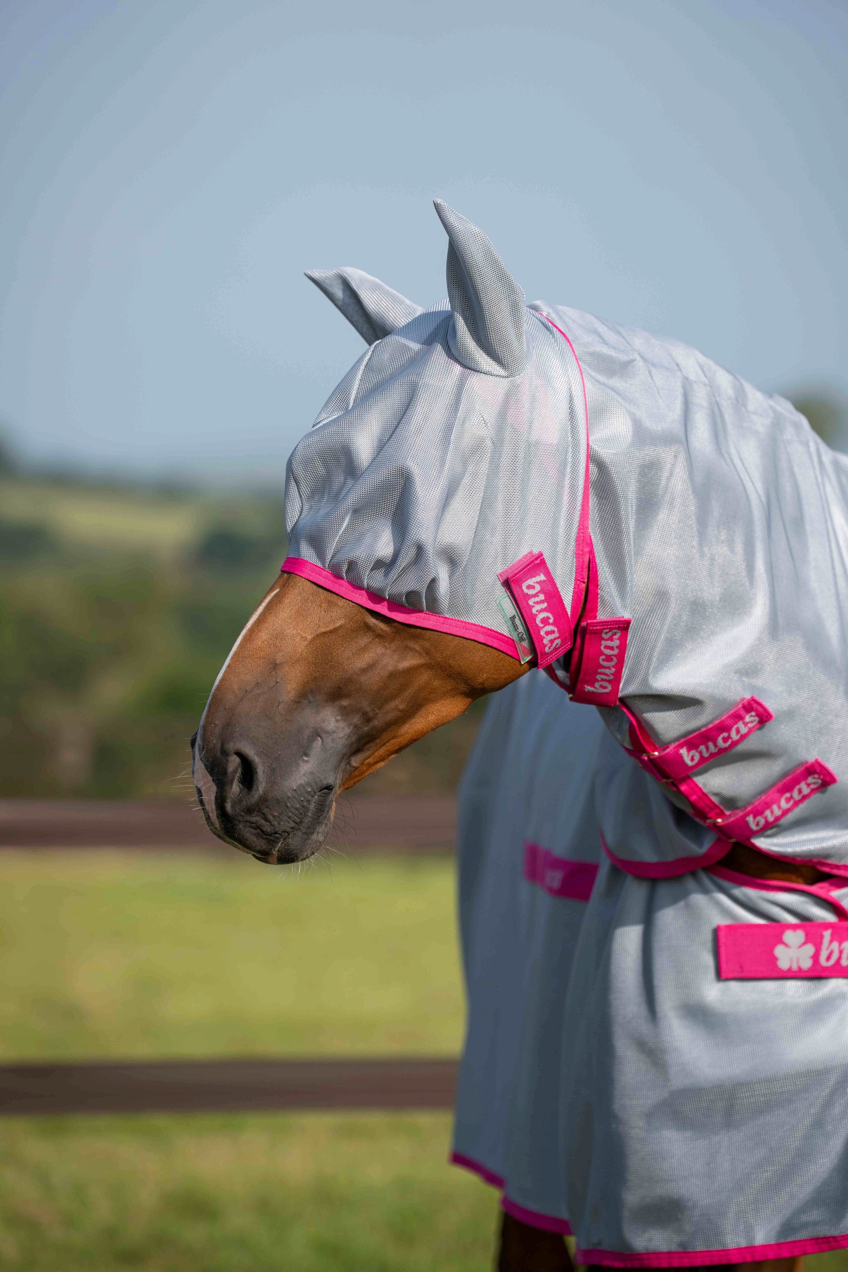 Dank der reflektierenden Eigenschaften des Gewebes wird zudem die Belastung durch UV-Strahlung deutlich reduziert, was besonders bei Pferden mit heller Haut im Augenbereich einen echten Mehrwert bietet.