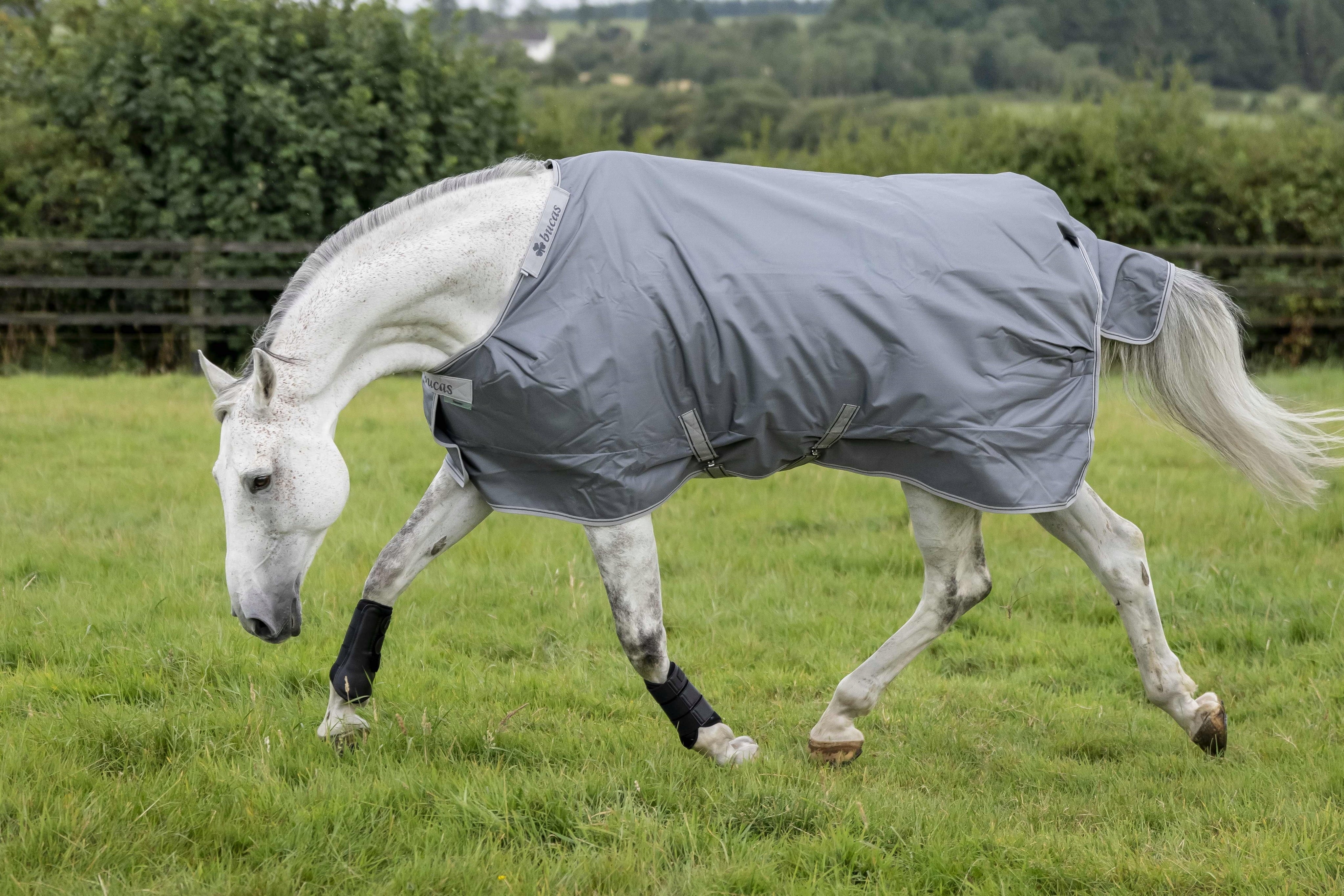 Das ballistische Nylon-Obermaterial (1680D) ist wasserdicht und atmungsaktiv und bewährt sich auch im täglichen Einsatz auf der Weide. Bewegungsfreiheit entsteht durch Schulterfalten und das angenehm glatte „Silk-feel“-Futter im Schulterbereich, das Scheuerstellen reduziert. Mit dem Click’n Go System und dem Magnetverschluss kannst du die Decke schnell und sicher verschließen.