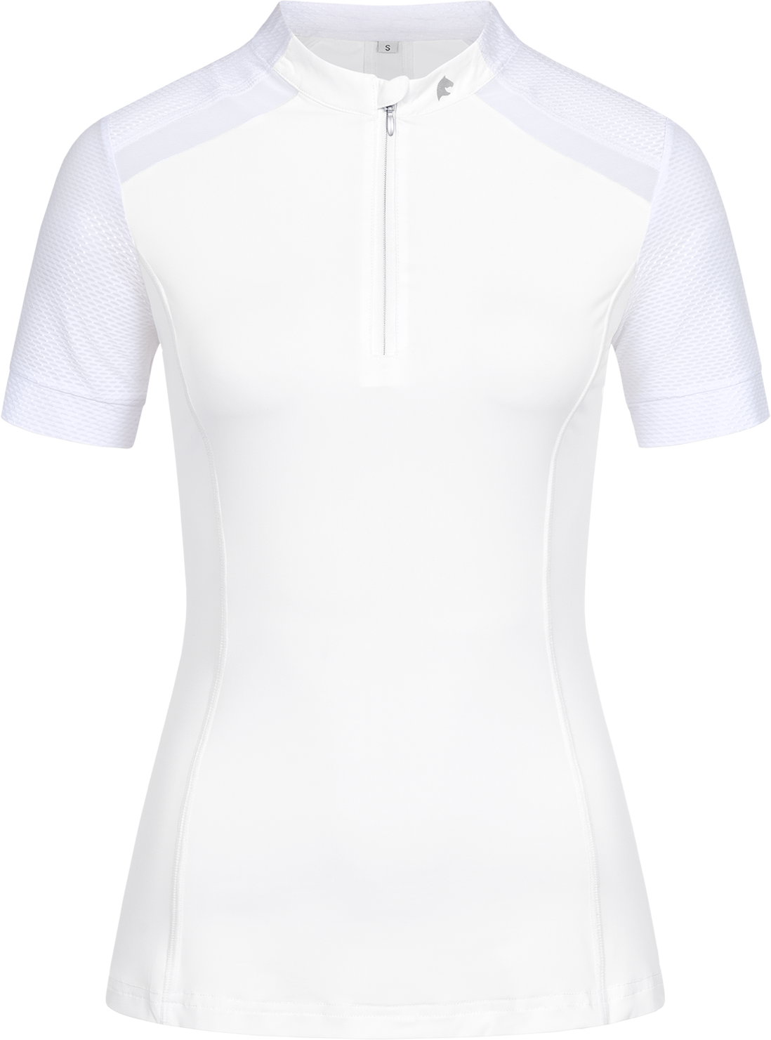 Das Funktions-Zip-Shirt Nancy ist die perfekte Wahl für dein Training an warmen Tagen oder als atmungsaktive Schicht unter deinem Jacket. In der Farbe Weiß ist es außerdem die optimale Wahl für deine Turniertage. Durch die taillierte Passform und das hochelastische Funktionsmaterial schmiegt es sich optimal an deine Silhouette an, ohne dich in der Bewegung einzuschränken. Besondere Mesh-Einsätze an den Schultern und in der Rückenmitte sorgen für eine exzellente Luftzirkulation und ein stets trockenes Tragegefühl.