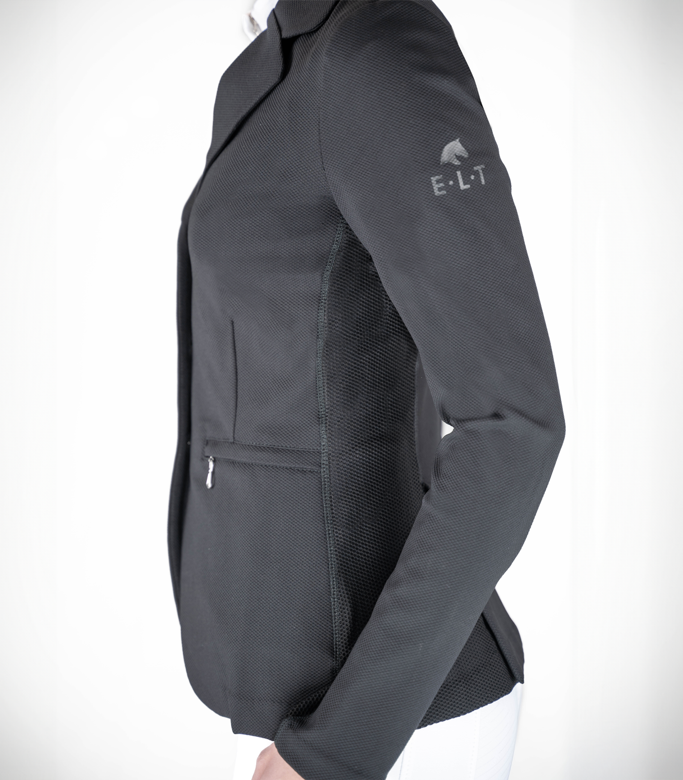 Die technische Optik wird durch modische Details ergänzt, wie die zwei seitlichen Eingrifftaschen mit dekorativen Pullern am Reißverschluss. Ein dezenter E·L·T Logo-Print am Ärmel unterstreicht das sportliche Design dieses Jackets. Ob im Springparcours oder im Dressurgeviereck – dieses leichte Mesh-Jacket unterstützt deine Performance durch ein optimales Klimamanagement und einen professionellen Look.