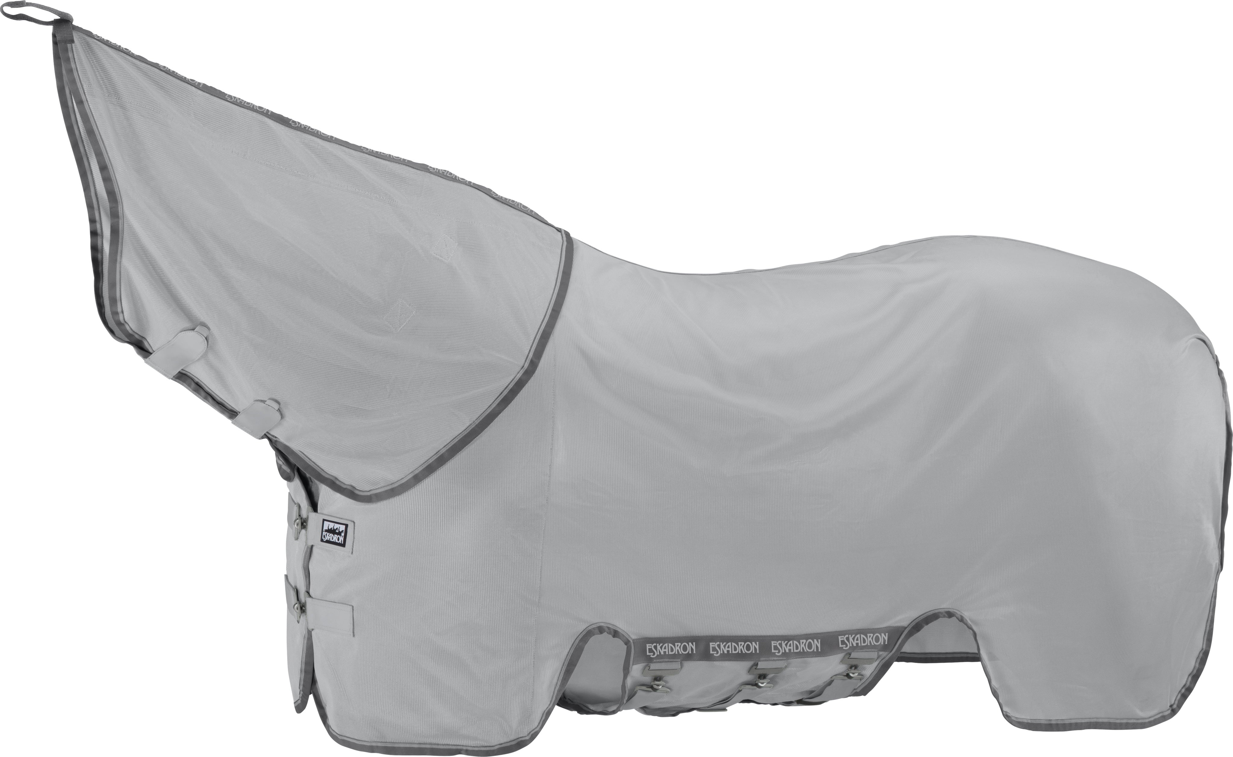 Mit der leichten Fliegendecke von Eskadron bietest du deinem Pferd zuverlässigen Schutz an warmen Tagen. Das engmaschige Polyestergewebe hält lästige Insekten fern, während atmungsaktive und glatte Einsätze an Mähne, Brust und Schweifbereich für zusätzlichen Komfort sorgen. Durch das abnehmbare Halsteil kannst du die Decke flexibel anpassen, und der Schweiflatz sowie die sichere Doppelbrustverschnallung mit Klettfixierung runden die Ausstattung ab.