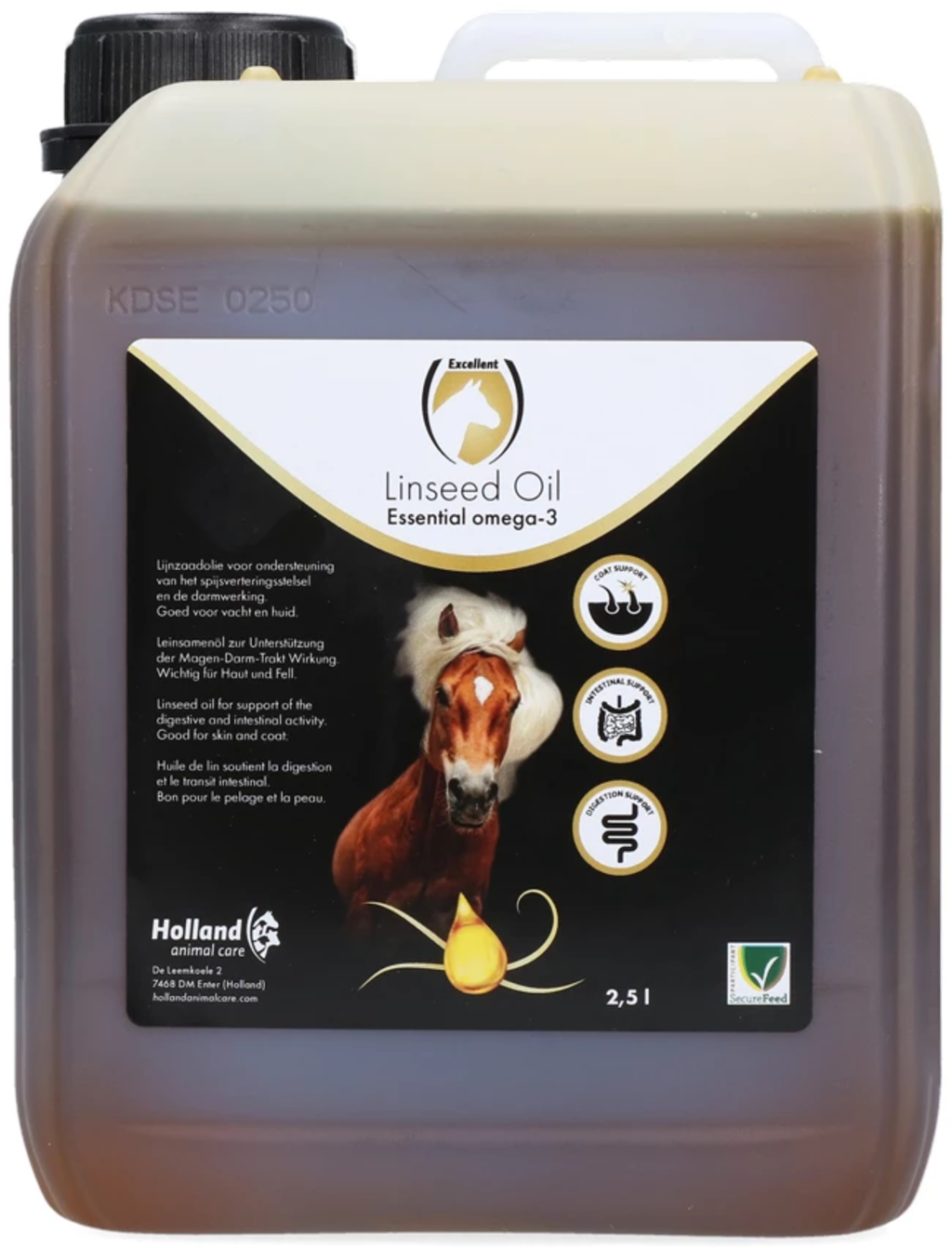 Mit 100 % kaltgepresstem Leinsamen ist dieses Öl ein beliebtes Einzelfuttermittel für Pferdebesitzer, die Wert auf natürliche Unterstützung im Futter legen.