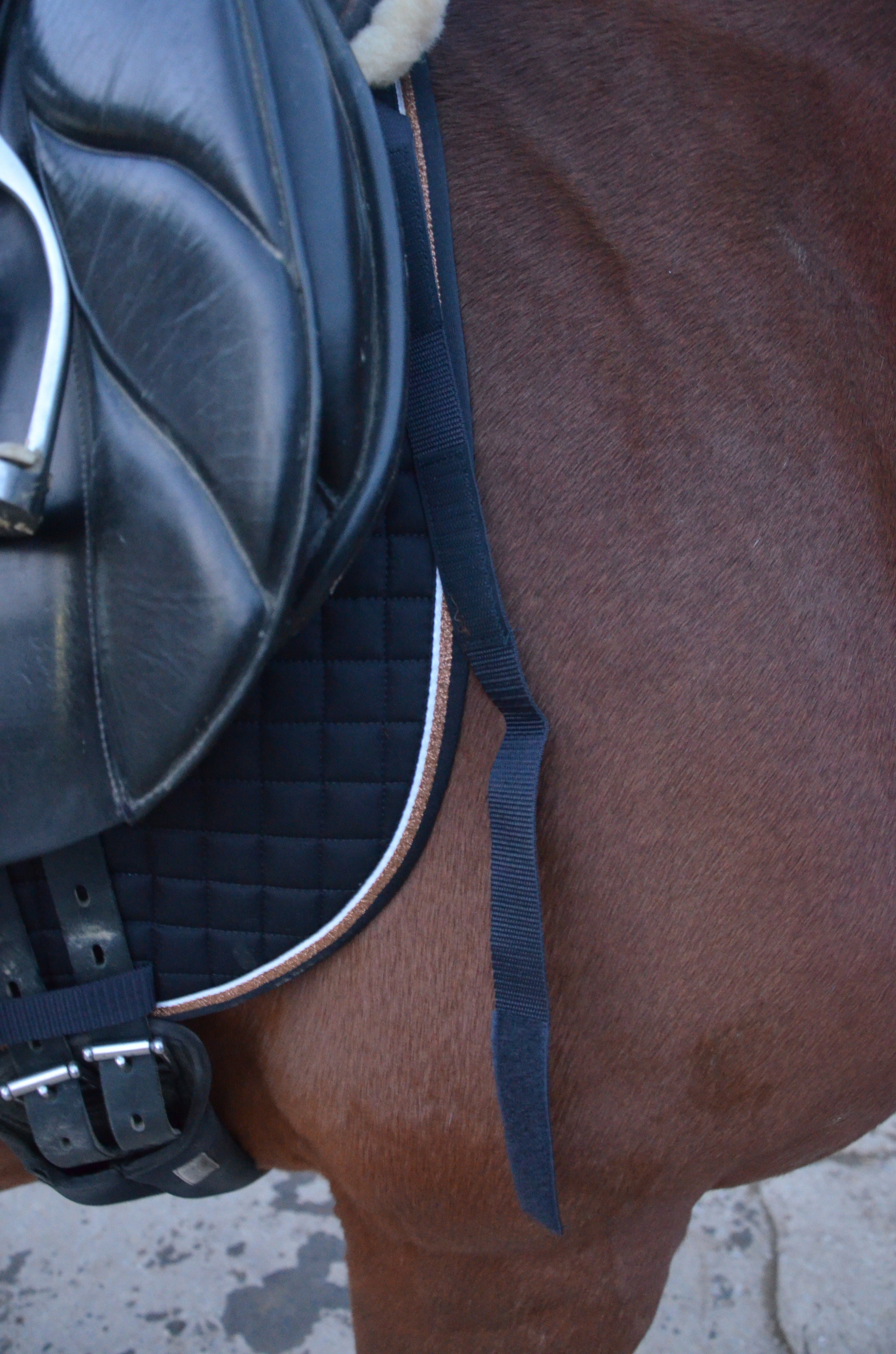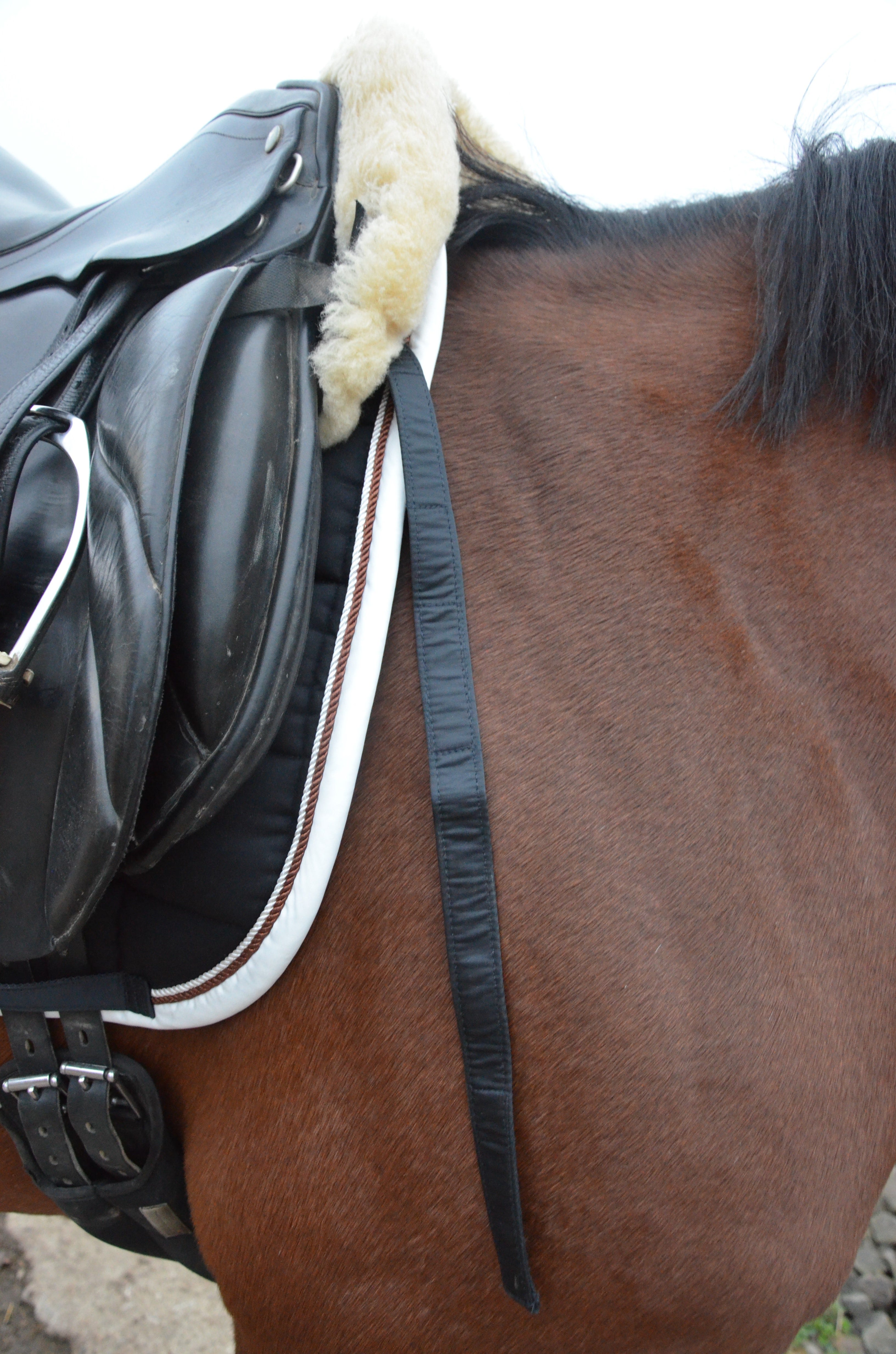 Was mir persönlich noch fehlt, ist ein Klettverschluss an der Sattelgurtschlaufe, damit die Schabracke abgenommen werden kann, ohne den Sattelgurt abmontieren zu müssen.