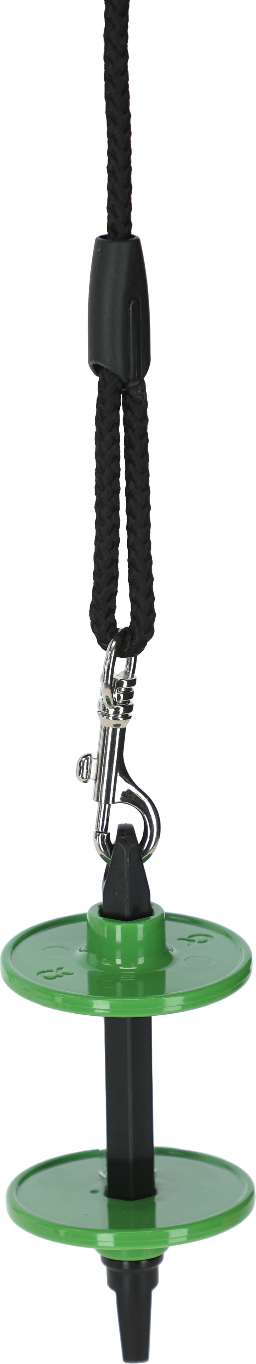 Der Lecksteinhalter Delizia® ist mit einem Aufhängeseil inklusive Schlaufe und Karabiner ausgestattet und kann beliebig für alle Delizia® Lecksteine verwendet werden.
