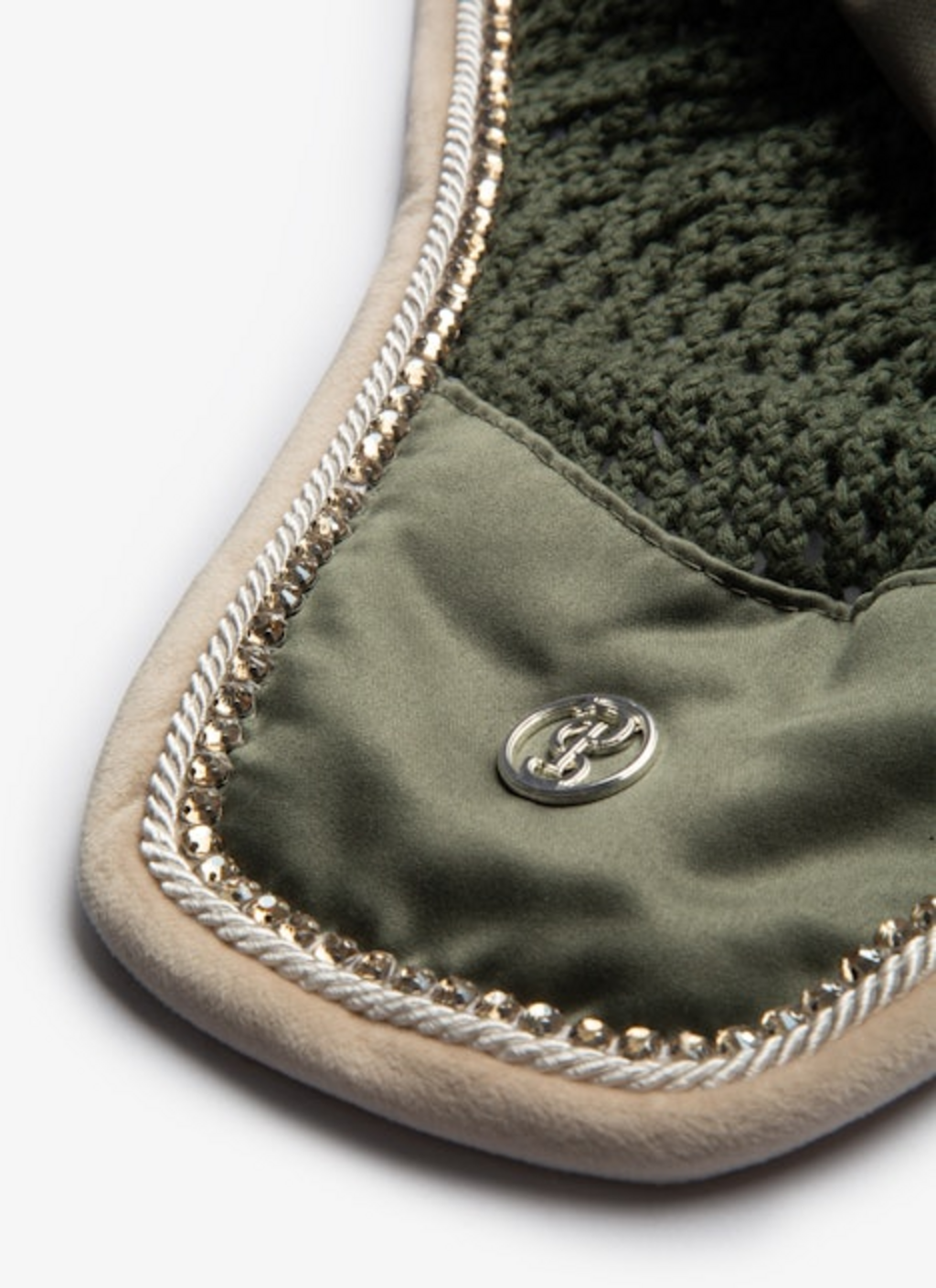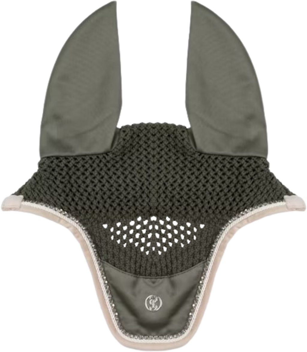 Die Vintage Monogram Ohrenhaube ist anatomisch geformt und sitzt dank elastischer Jersey-Ohren perfekt. Das handgehäkelte Design auf der Vorderseite sorgt für eine elegante Optik, während die Kante mit funkelndem Kristallband und glänzendem Kordelabschluss besondere Akzente setzt. Durch den Klettverschluss am Hinterkopf bleibt die Fliegenhaube sicher am Trensenzaum befestigt. Sie schützt dein Pferd vor Insekten und sorgt für ungestörte Konzentration beim Training und im Wettkampf. Abgerundet wird das Design durch das PS Metall-Logo.