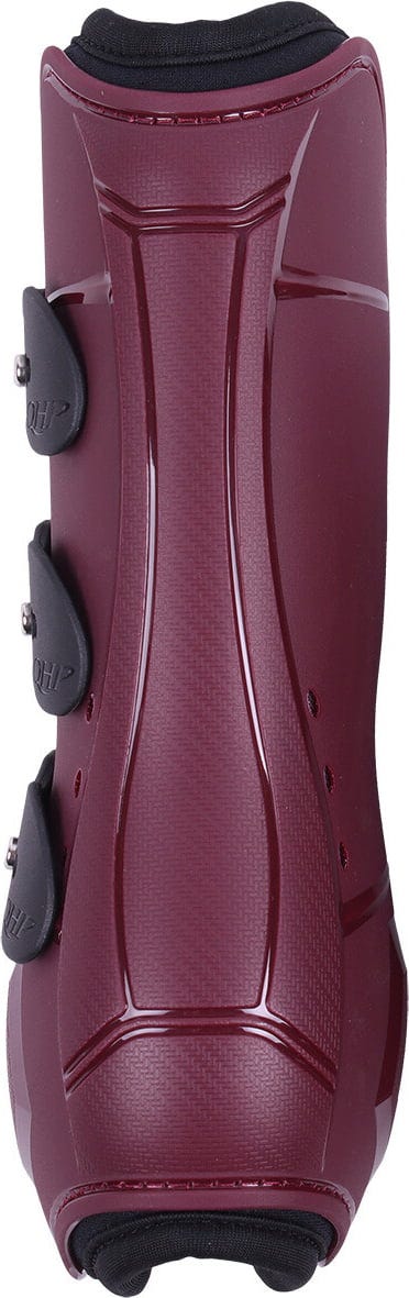 Diese sportlichen Hartschalen-Gamaschen in elegantem Bordeaux wurden entwickelt, um die Sehnen an den Hinterbeinen deines Pferdes zuverlässig vor Schlägen und Stößen zu schützen. Sie bieten dank intelligenter Materialtechnologie eine ideale Kombination aus maximalem Schutz und effektivem Hitzemanagement.