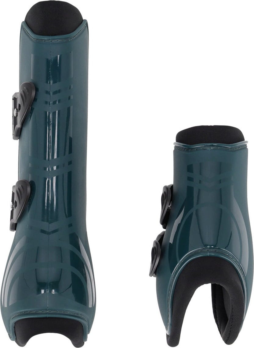 Die anatomisch geformten Protektoren bestehen außen aus einer robusten, harten Kunststoffschale (Polyurethan) in mattem Finish, akzentuiert durch glänzende Streifen für einen sportlichen Look. Für maximalen Komfort sorgt die Innenseite, die mit einem weichen Neoprenfutter ausgekleidet ist. Die Gamaschen sind außerdem besonders leicht und lassen sich dank der elastischen Schnellverschlüsse mühelos und in Sekundenschnelle anlegen und befestigen!