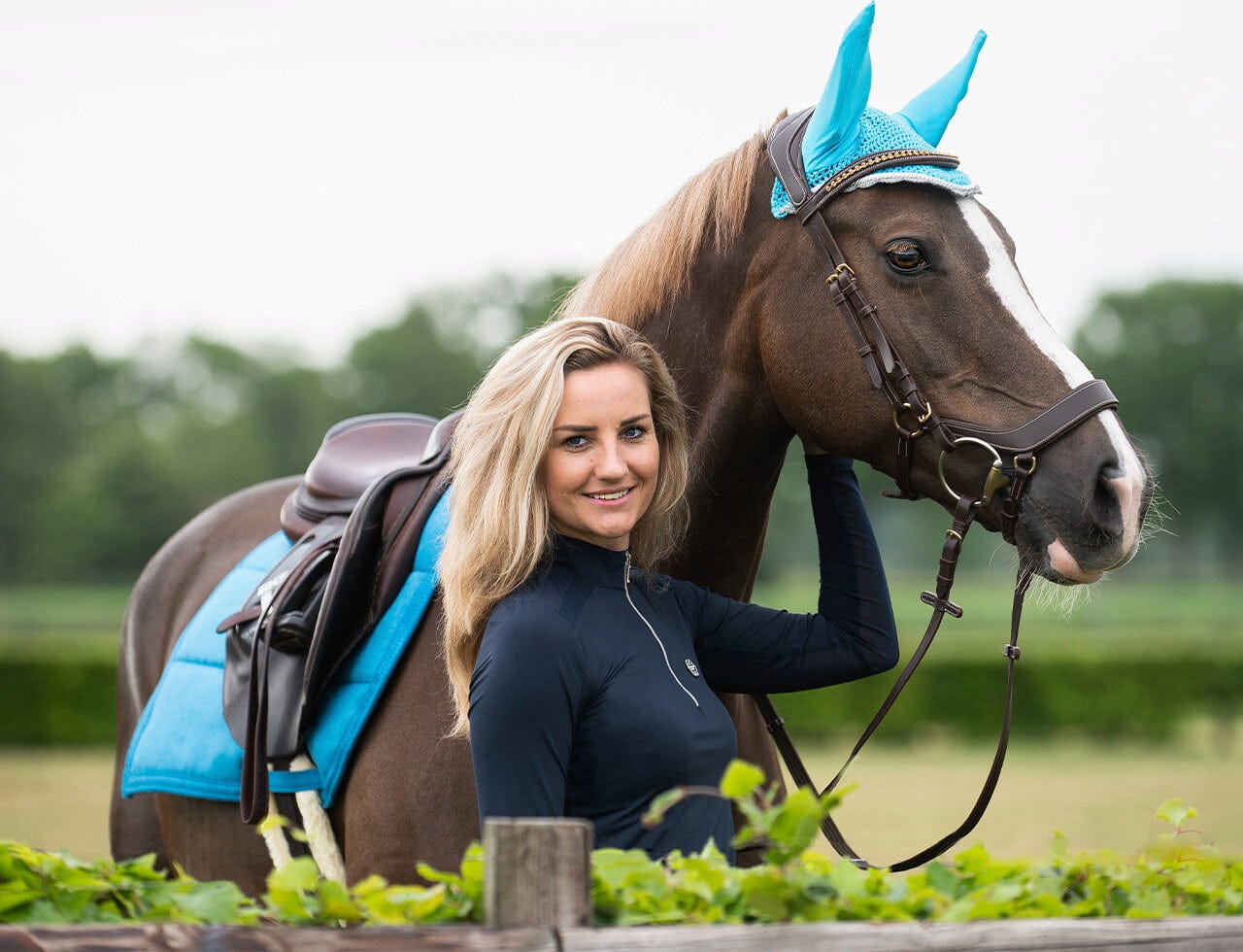 Die Ohren selbst sind aus einem elastischen Stoff gefertigt, der eine optimale und komfortable Passform garantiert, ohne zu drücken. Optisch überzeugt die Haube durch moderne, ansprechende Farben und eine stilvolle weiße Zierkordel am Rand. Für einen sicheren Halt kannst du die integrierte Schnur einfach zur Befestigung um die Kehle deines Pferdes verwenden.