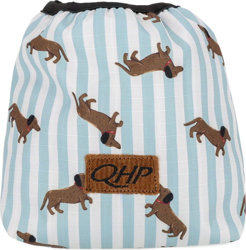 Dank des flexiblen, elastischen Bündchens ziehst du die praktischen Überzüge mit nur einem Handgriff über die Bügel. So bleiben sie auch beim Transport oder in der Sattelkammer sicher an Ort und Stelle. Optisch begeistert dieses Set mit dem fröhlichen Dackel-Druck und einem edlen Logo-Detail aus Cordsamt. Ein wirklich cleveres Accessoire, das deine Ausrüstung schont und gleichzeitig deinen Reitalltag charmanter macht!