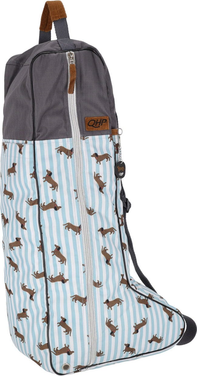 Den Transport zum Turnier oder in die Sattelkammer gestaltest du ganz flexibel: Nutze dafür den weichen Handgriff oder den abnehmbaren, verstellbaren Schultergurt. Mit dem dekorativen Stable-Buddy-Druck, den edlen Cordsamt-Einsätzen am Logo und dem charmanten Dackel-Schlüsselanhänger ziehst du zudem alle Blicke auf dich.