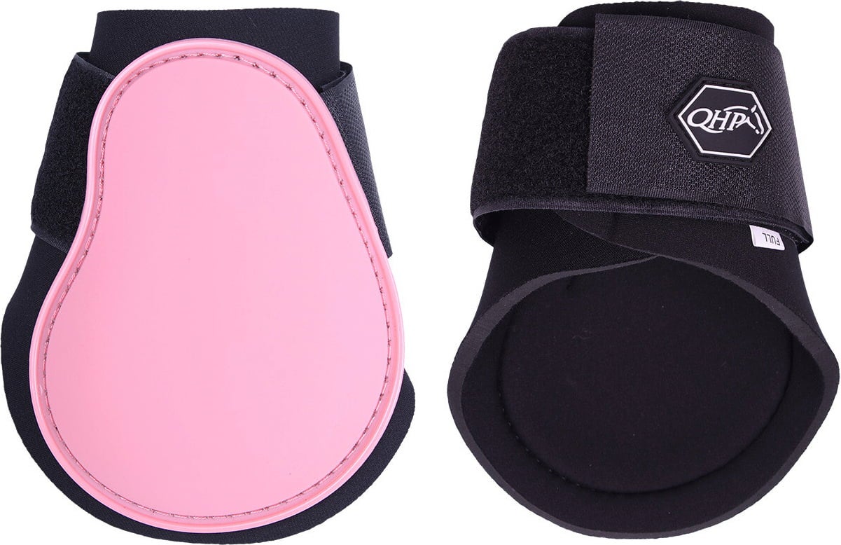 Dieses Set aus zwei offenen Streichkappen in strahlendem Pink schützt die Hinterbeine deines Pferdes im Training und beim Springen und dämpft Stöße sowie Schläge zuverlässig ab.