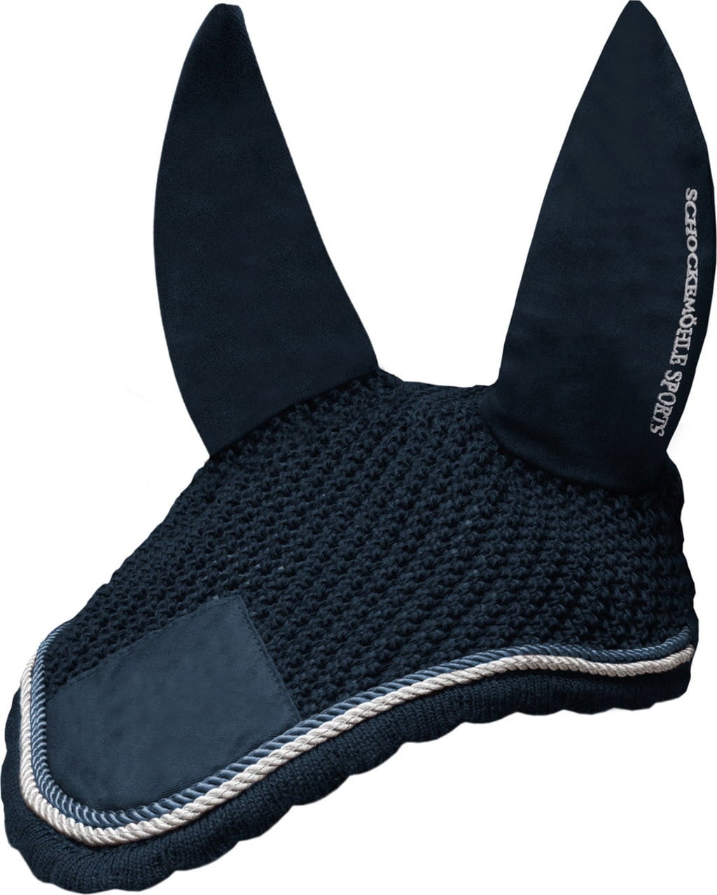 Diese schlichte und dennoch auffällige Fliegenhaube passt ideal zu den Dressur- und Springschabracken 'Neo Star Pad'. Das hochwertige Häckelmuster wird von einem Satin-Patch und von farblich abgestimmten Zierkordeln umspielt. Die Ohren bestehen zu 100 % aus angenehmer Baumwolle. Mit schönem Marken-Schriftzug entlang der linken Ohr-Außenseite.