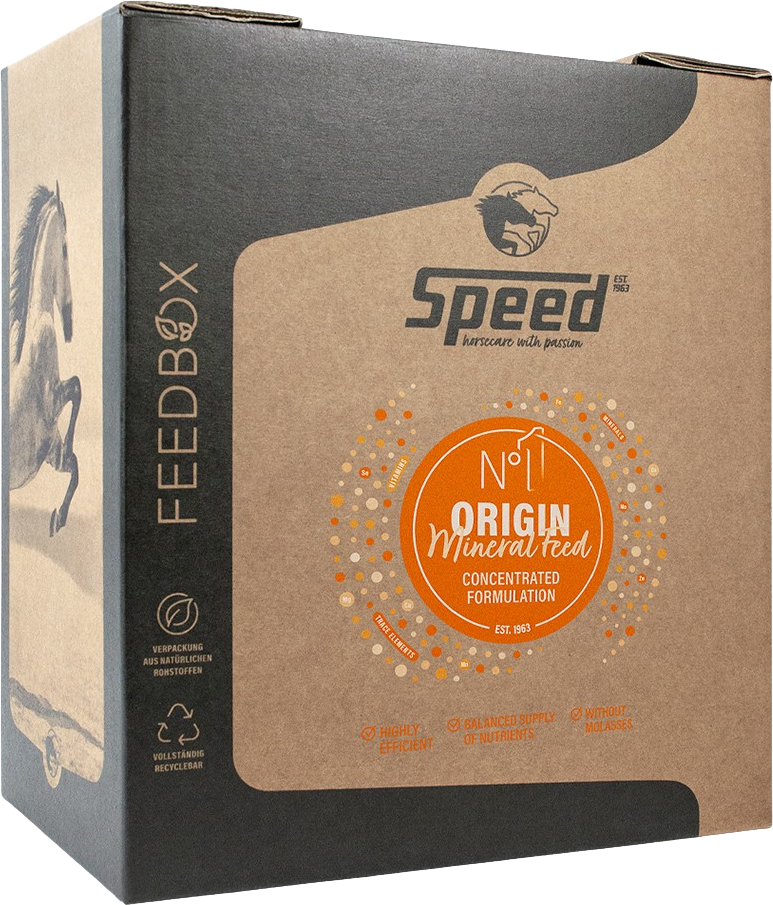 SPEED N°1 Origin bietet eine ausgewogene Basisformulierung für alle Pferde. Das Mineralfutterkonzentrat liefert essenzielle Mineralstoffe, Spurenelemente und Vitamine, um die Leistungsbereitschaft nachhaltig zu unterstützen. Präbiotische Bierhefe kann zur Verbesserung der Darmtätigkeit beitragen und unterstützt die Nährstoffaufnahme. eine traditionelle Rezeptur, die an aktuelle Forschungsergebnisse angepasst wurde.