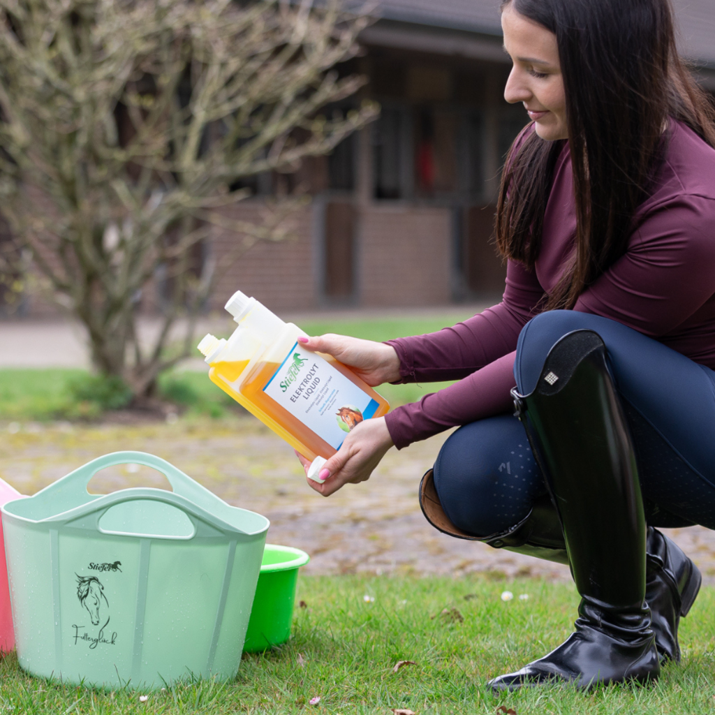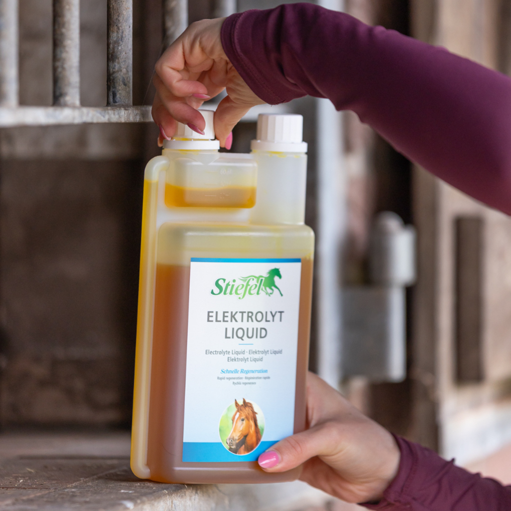 Stiefel Elektrolyt Liquid ist ein Ergänzungsfuttermittel zum Ausgleich von Elektrolytverlusten. Bei übermäßigem Schwitzen, zum Beispiel durch hohe Temperaturen oder starke Anstrengung, verliert ein Pferd Mineralstoffe. Stiefel Elektrolyt Liquid enthält viele Elektrolyte (Mineralstoffe) sowie Glukose und kann dadurch zu einer schnellen Regeneration bei hoher Anstrengung beitragen. Stiefel Elektrolyt Liquid ist für Sportpferde, aber auch Fohlen und alte Pferde geeignet.
