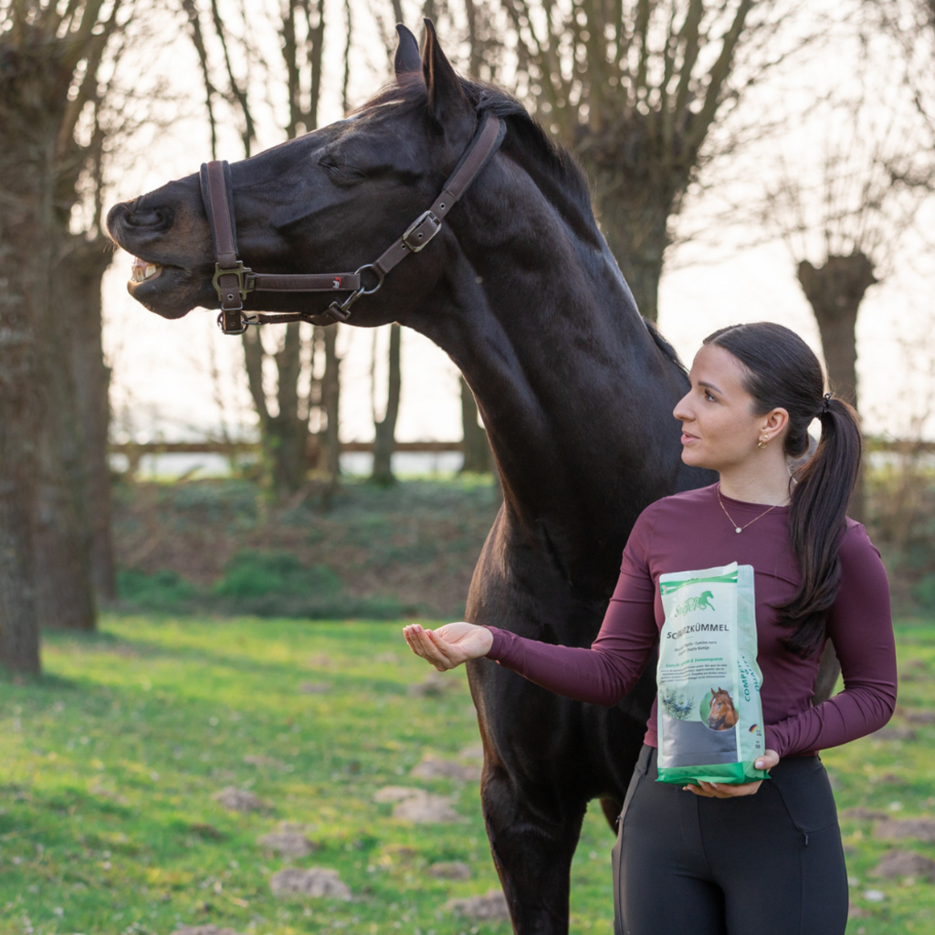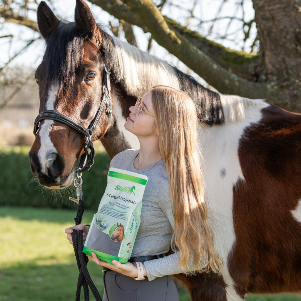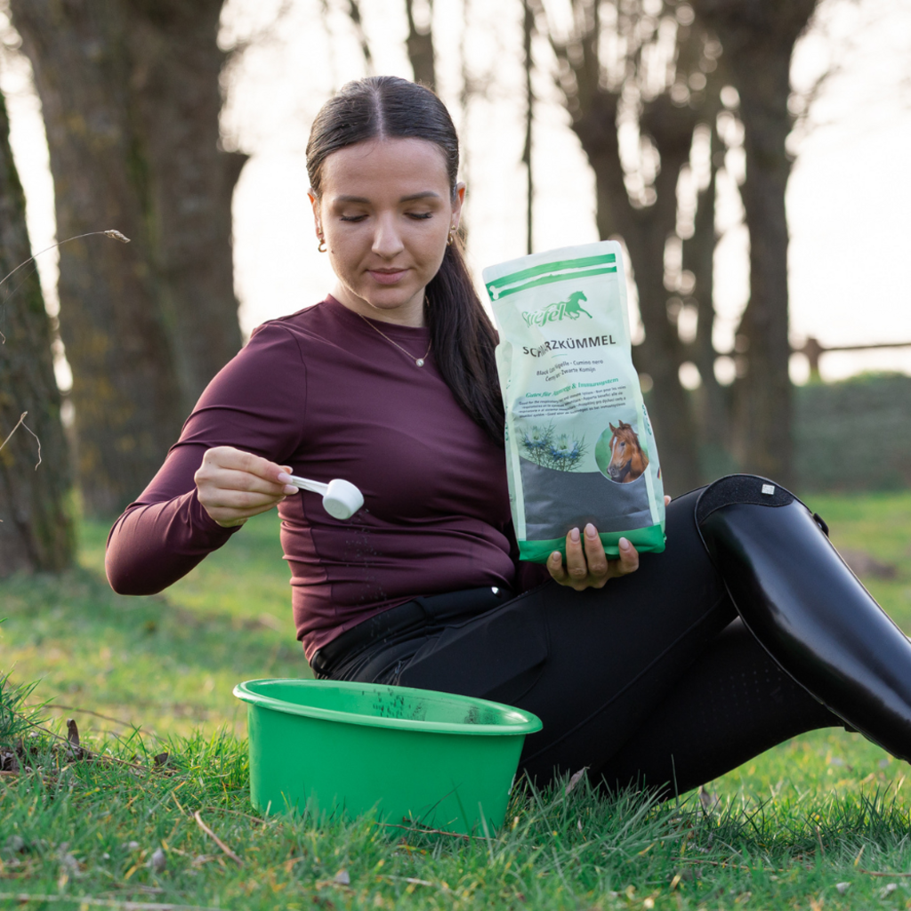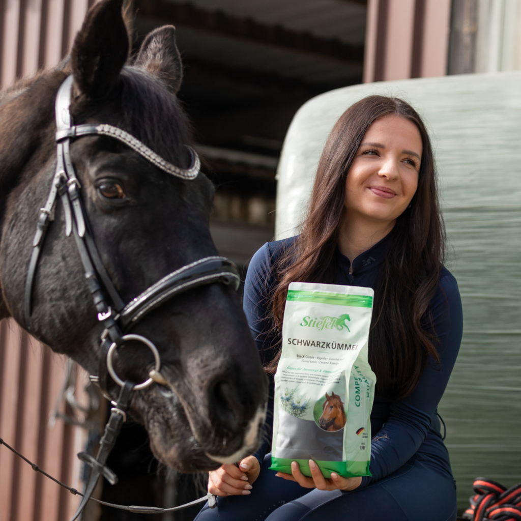 Stiefel Schwarzkümmelsamen kann das Immunsystem unterstützen und die Haut positiv beeinflussen. Schwarzkümmel ist reich an mehrfach ungesättigten Fettsäuren. Dadurch können Stoffwechsel, Darmflora und Schleimhäute des Pferdes unterstützt werden. Dadurch sind Stiefel Schwarzkümmelsamen optimal auch für Pferde mit empfindlicher Haut geeignet.